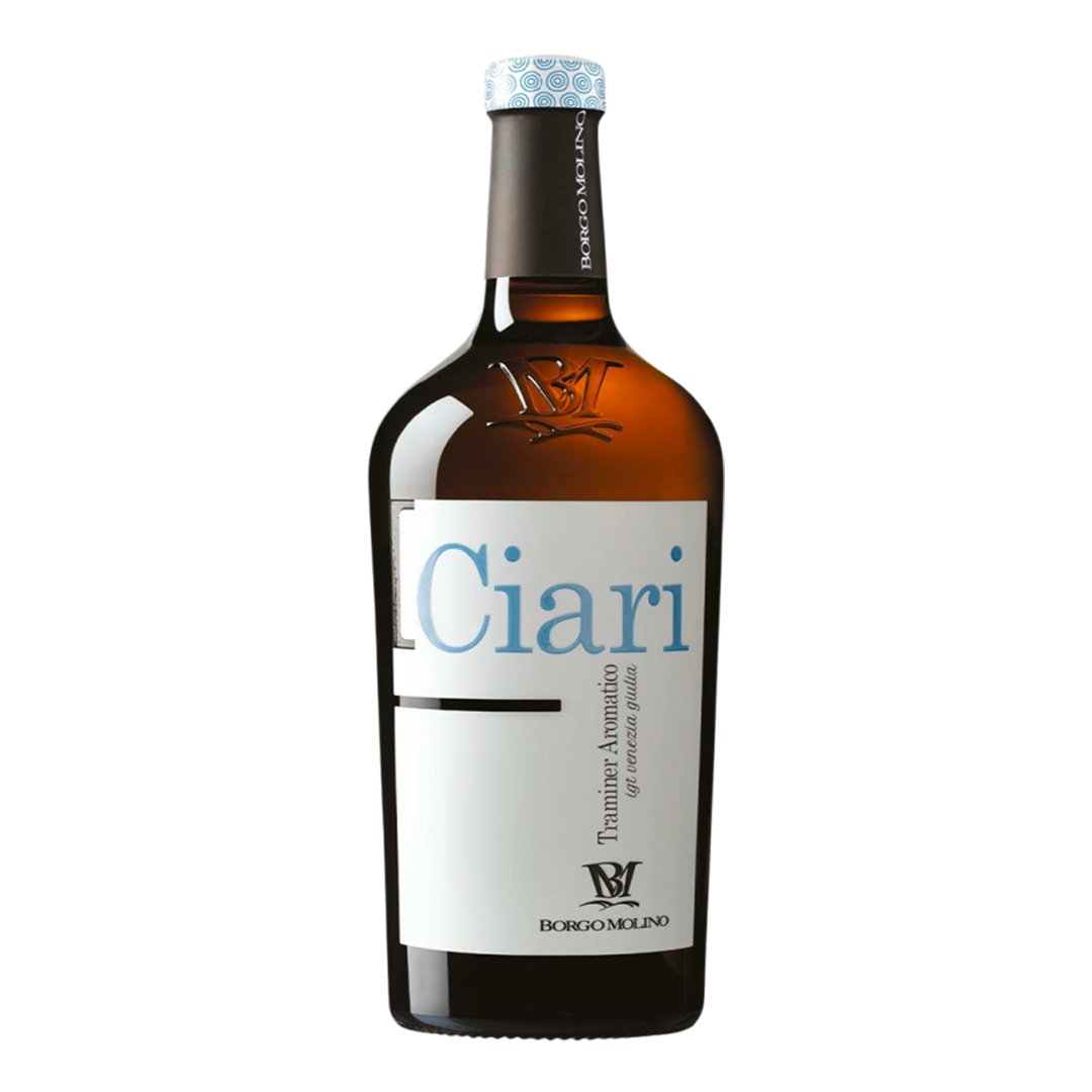 El Ciari es un vino blanco aromático elaborado por Borgo Molino a partir de uvas Traminer Aromatico cultivadas en viñedos seleccionados de la llanura veneciana. Las uvas se cosechan en su punto óptimo de maduración para preservar su intensidad aromática característica.